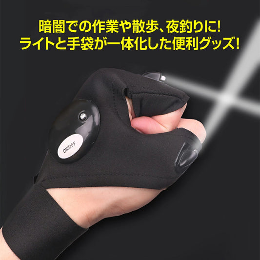 20%節約両手が自由になるLEDライト付き作業用グローブ